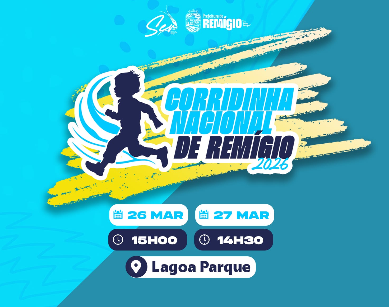A Prefeitura de Remígio, por meio da Secretaria de Educação, convida toda a população para participar da Corridinha Nacional de Remígio 2026, um evento voltado ao incentivo da prática esportiva, integração social e promoção da saúde entre crianças e adolescentes do município.